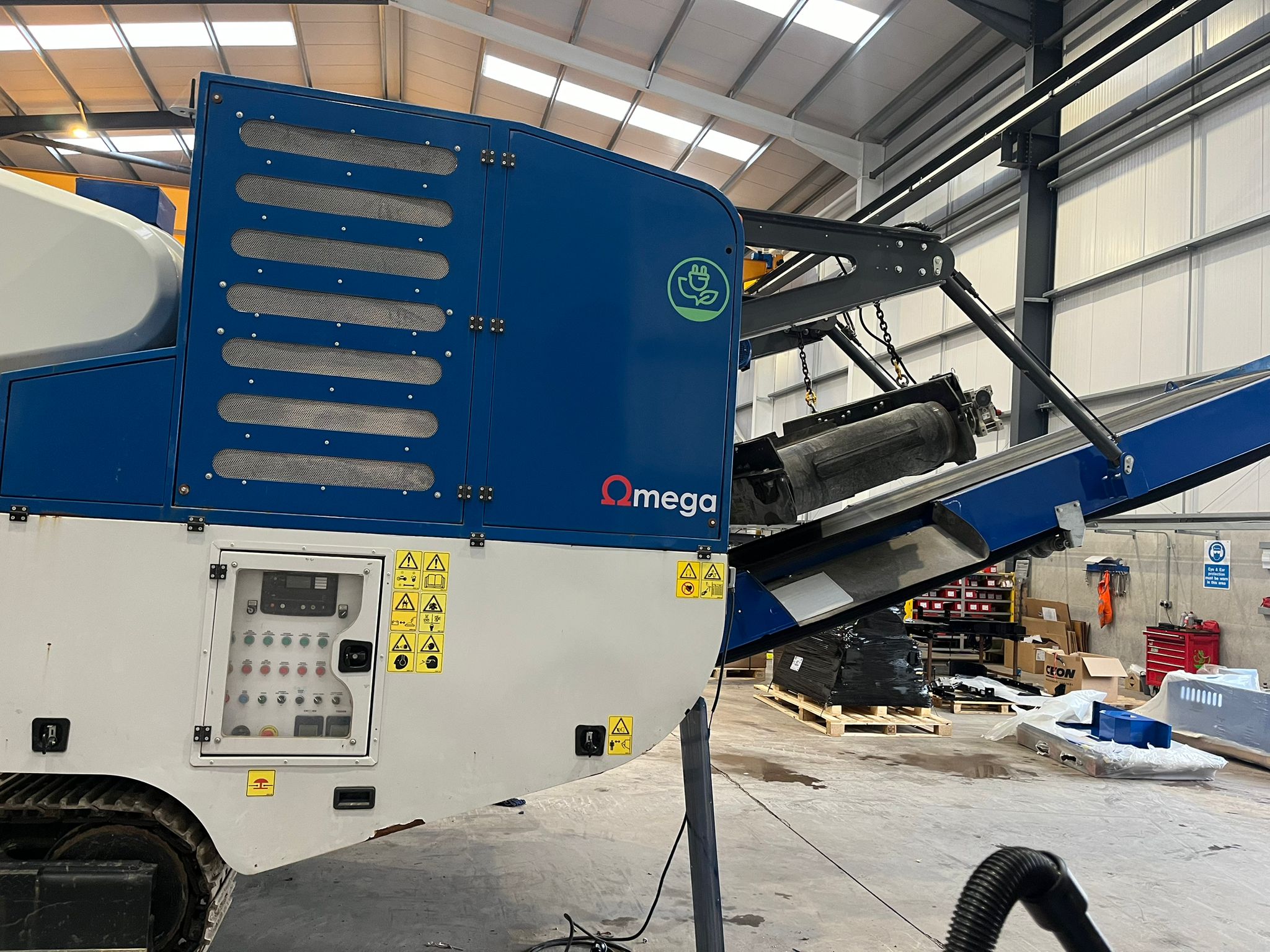 - Taśma odprowadzająca: Szerokość 900 mm, długość 9.15 m